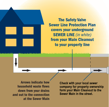The Sewer Line is the pipe that carries wastewater out of your house. It begins in your basement and extends the entire length of your property up to where it meets your local utility's sewer main in the street. The sewer line is buried four to ten feet underground.