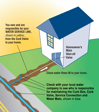The Water Service Line is the pipe that brings clean water into your house from your local utility's water main in the street. Depending on how far your house is from the street, your water service line can be from 20 to 200 feet long or more.